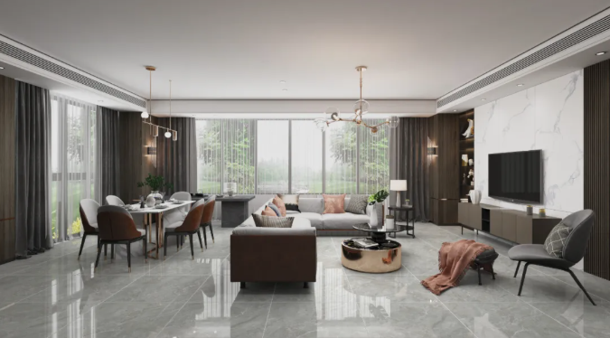 與其他顏色相比,窗前莫蘭迪色系椅子可以說是點(diǎn)睛之筆,配上800x800mm科隆奧尼灰,無論是公共空間、還是客廳、餐廳、廚房都能應(yīng)付自如,灰調(diào)色澤凸顯細(xì)膩質(zhì)感,給人一種直抵人心的靜謐和優(yōu)雅。