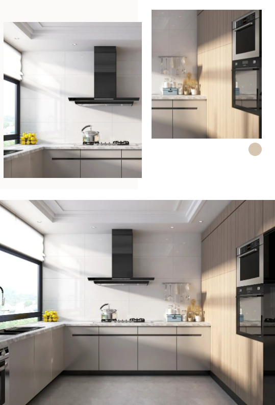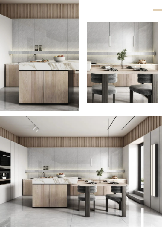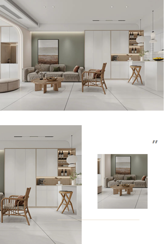墻面通體瓷拋石中板馬特拉,清爽的色調既拓寬了廚房的空間感,一石多面又增添了些許靈動,在陽光照射下,與暖調木紋互相輝映,建立起空間與自然之間的聯系,讓每次下廚都成為期待。